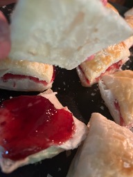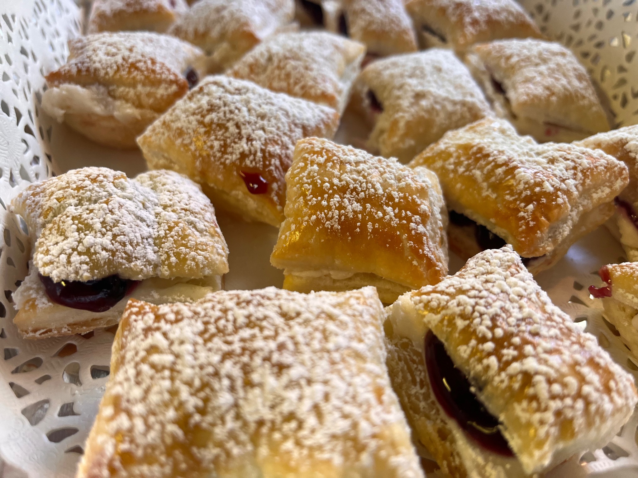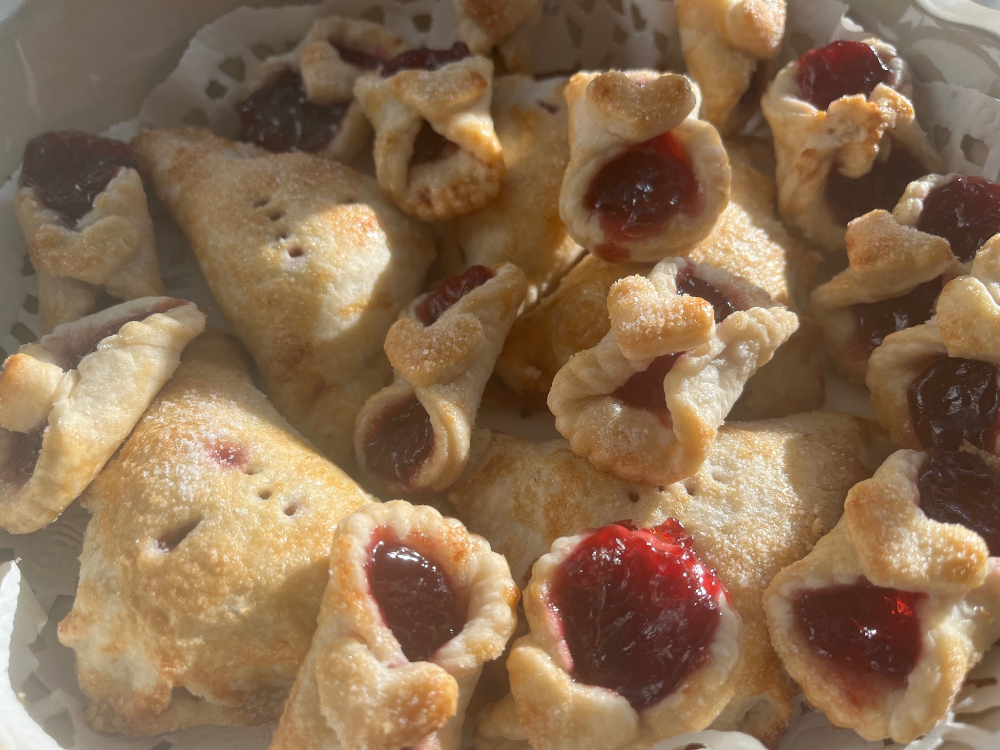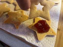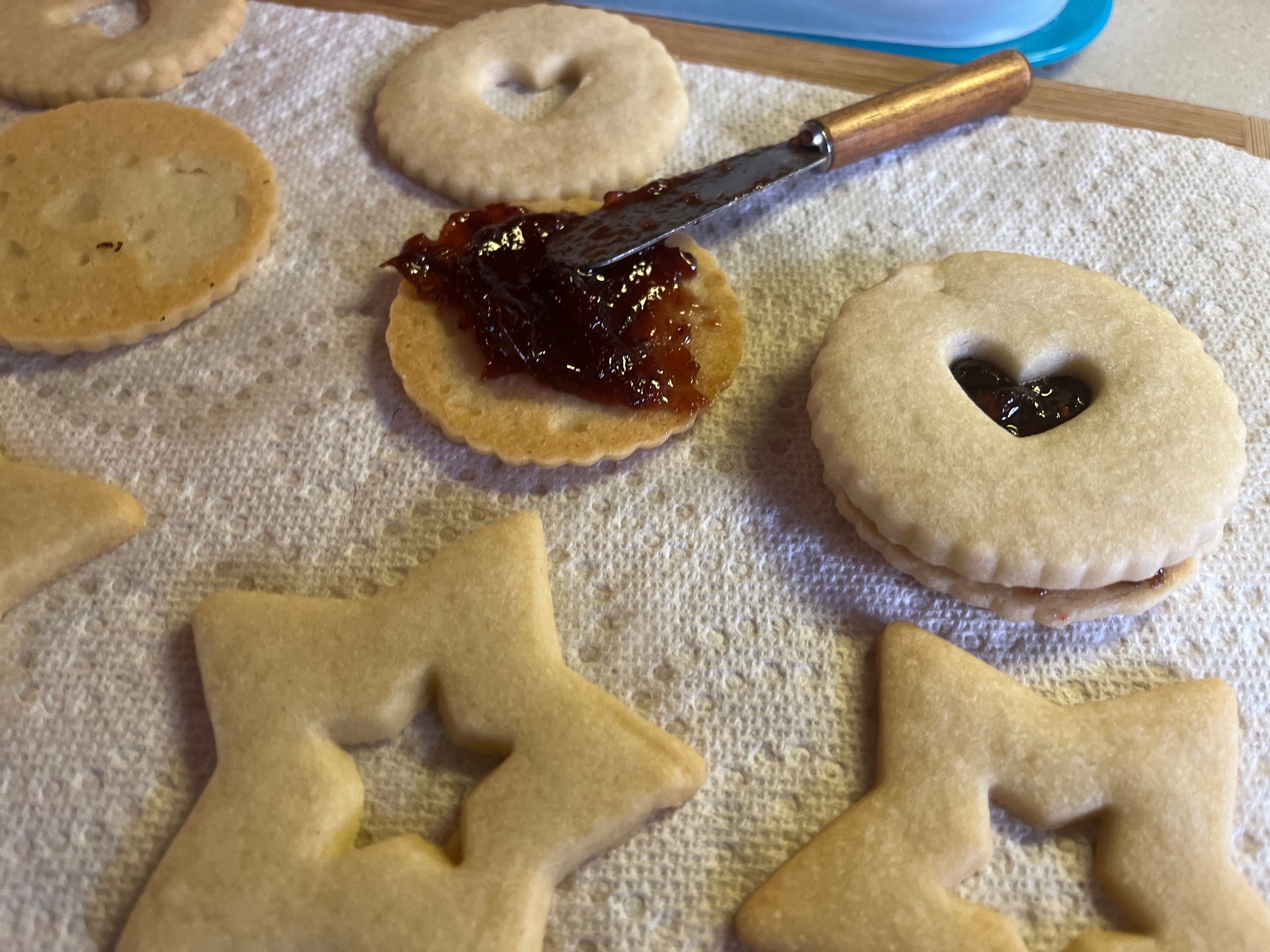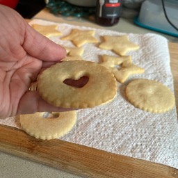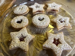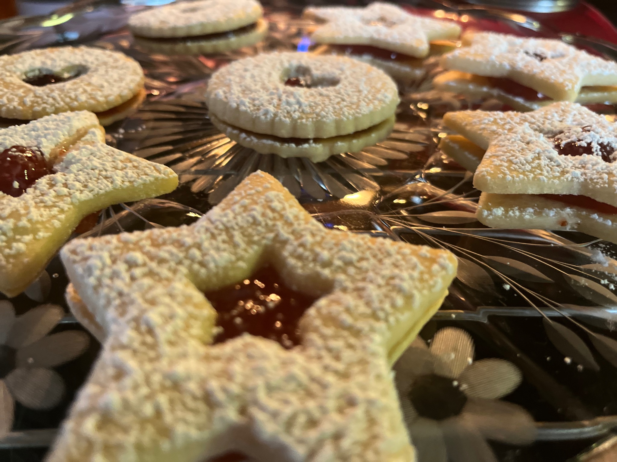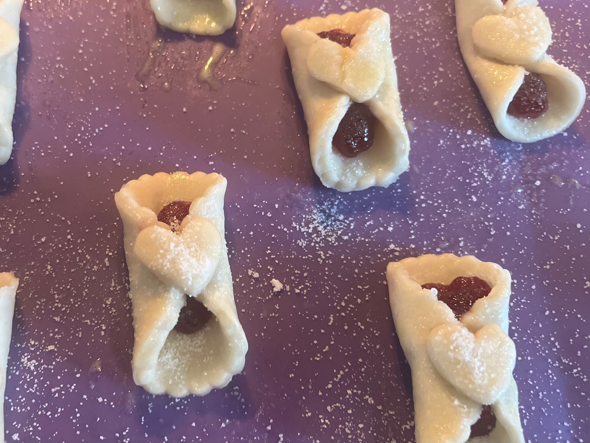 Raspberry filled fancy shortbread cookies.