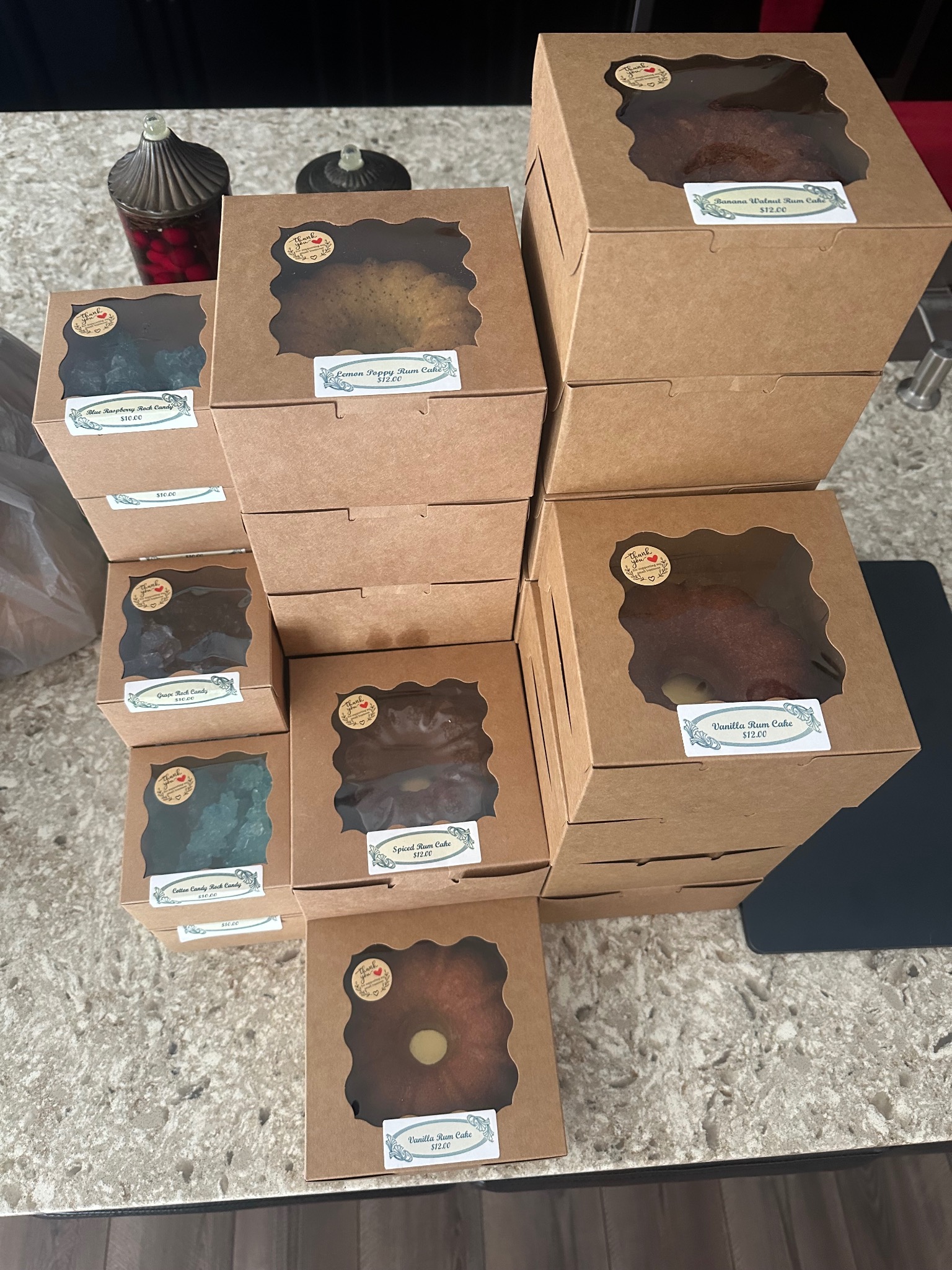 Our signature bake is our Spirited Bundt Cake — a rich, moist cakes infused with premium rum or whiskey. It’s baked with real butter, farm-fresh eggs, and a splash of spirit that enhances its deep flavor and tender crumb. Customers love it for its perfect balance of sweetness and warmth — a nostalgic taste of homemade comfort that’s become a weekly sell-out favorite across Maryland markets.