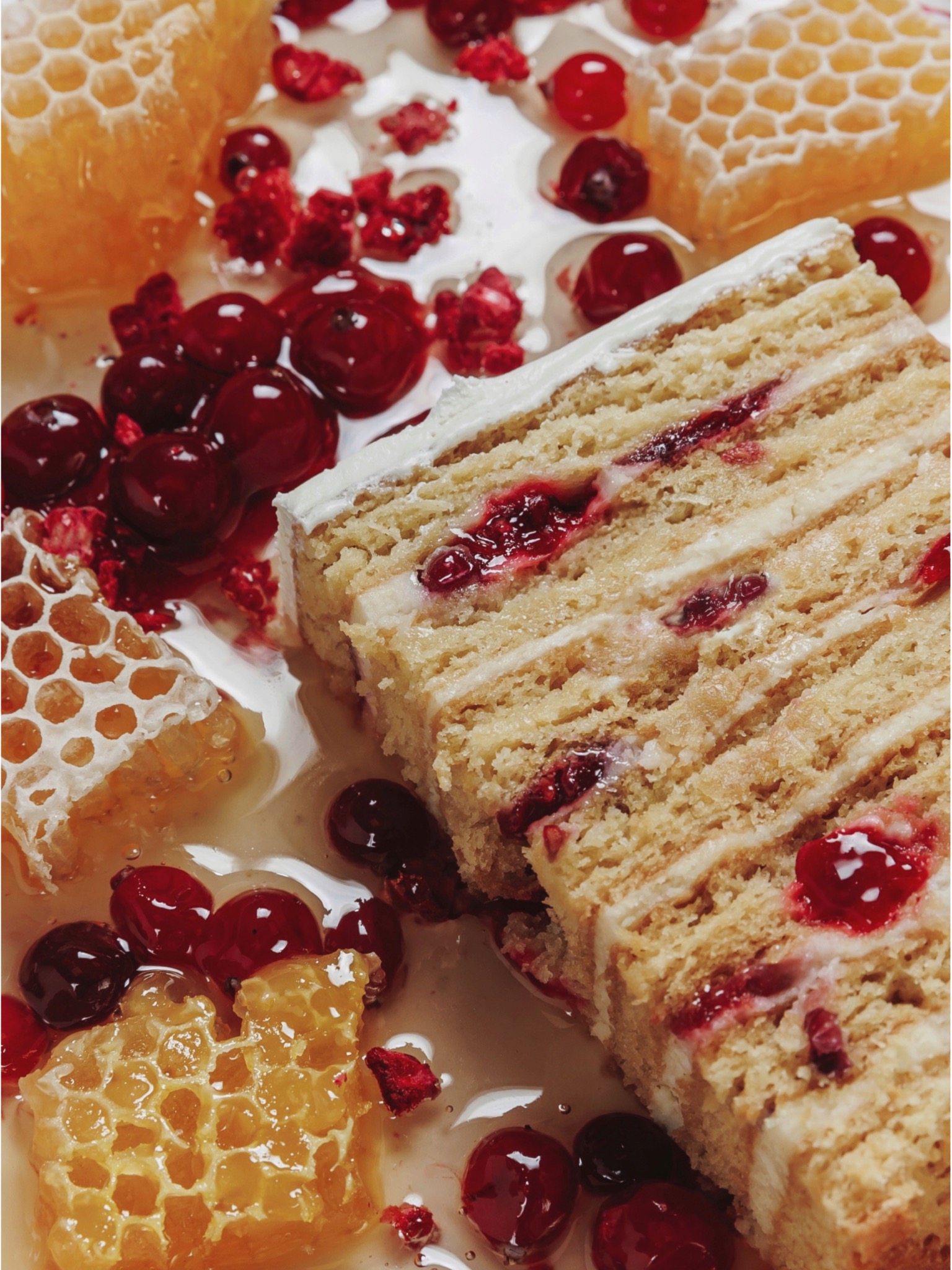My signature bake is a modern honey cake inspired by my Ukrainian roots. Over the years, I’ve reimagined this classic recipe, keeping its soul while adding lightness and freshness. Thin layers of delicate honey cake, silky cream, and bright raspberries and cranberries create the perfect balance of comfort and elegance. People choose it for their biggest moments - weddings, birthdays, and holidays, because it tastes like childhood, looks like art, and always disappears first from the table.