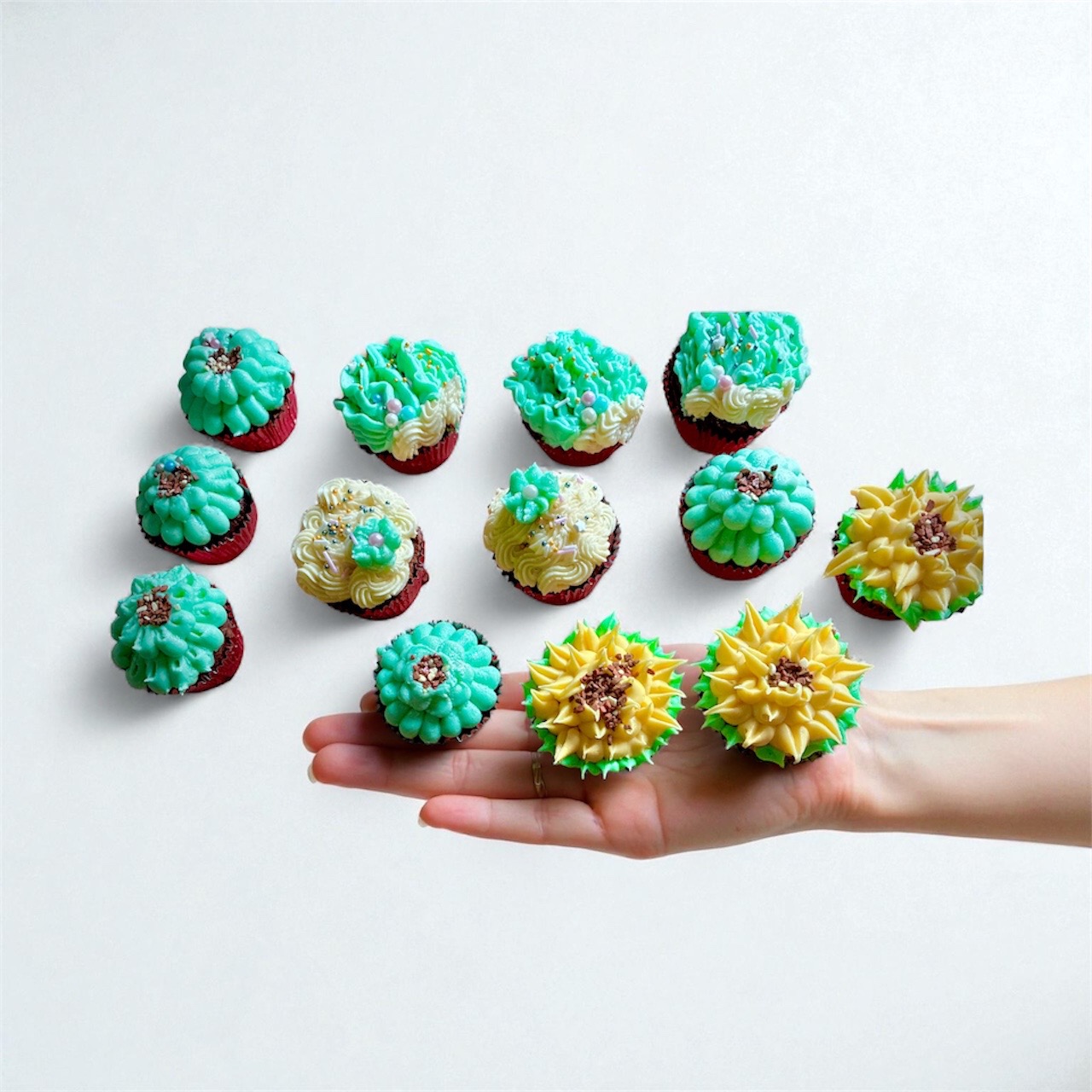 My signature baked good is gluten-free Red Velvet Cupcakes—a modern twist on a generations-old baking tradition. Each cupcake is crafted completely from scratch, using a perfectly balanced gluten-free batter that stays moist, tender, and rich with classic red velvet flavor. They’re topped with my silky cream cheese frosting, piped into delicate, hand-crafted floral designs that turn every cupcake into an edible bouquet. Beautiful, elegant, and worth every bite❤️