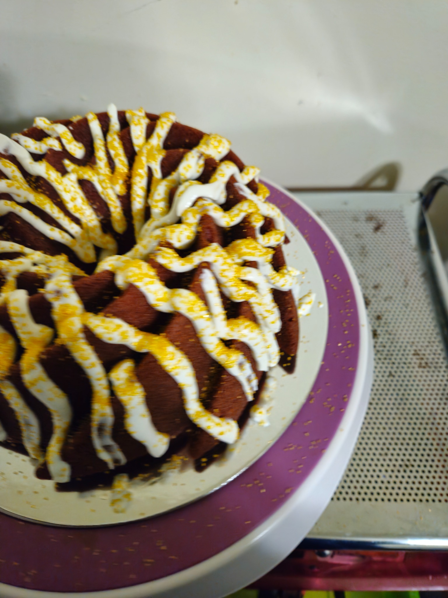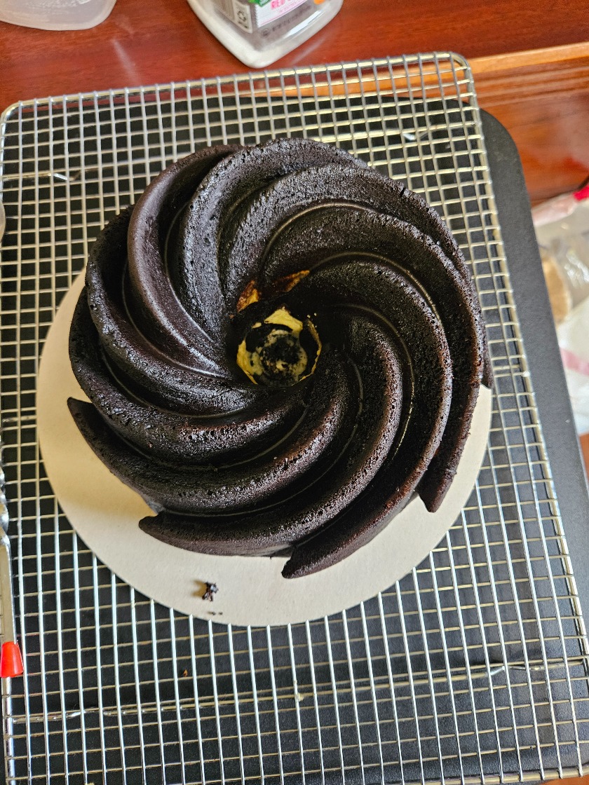I was trying out a new coco powder and had some cream cheese left over so I decided to make a dark chocolate cream cheese cake and well the pan overflowed but none the less it turned out amazing and my coworkers loved it so other then the blue velvet cake this is one cake I will have to put in the book